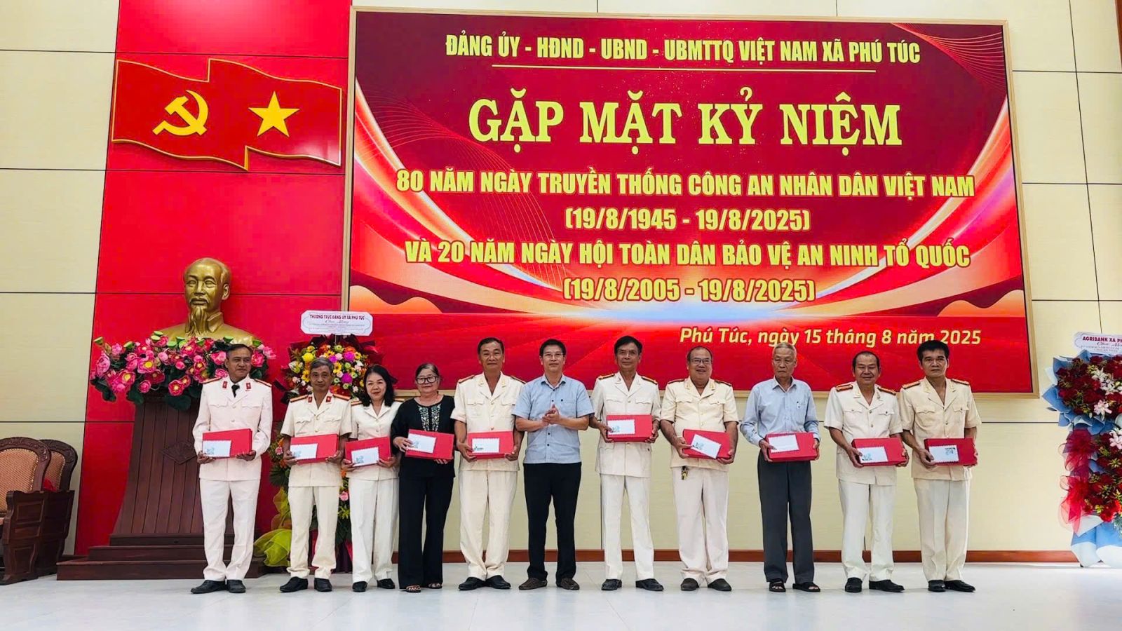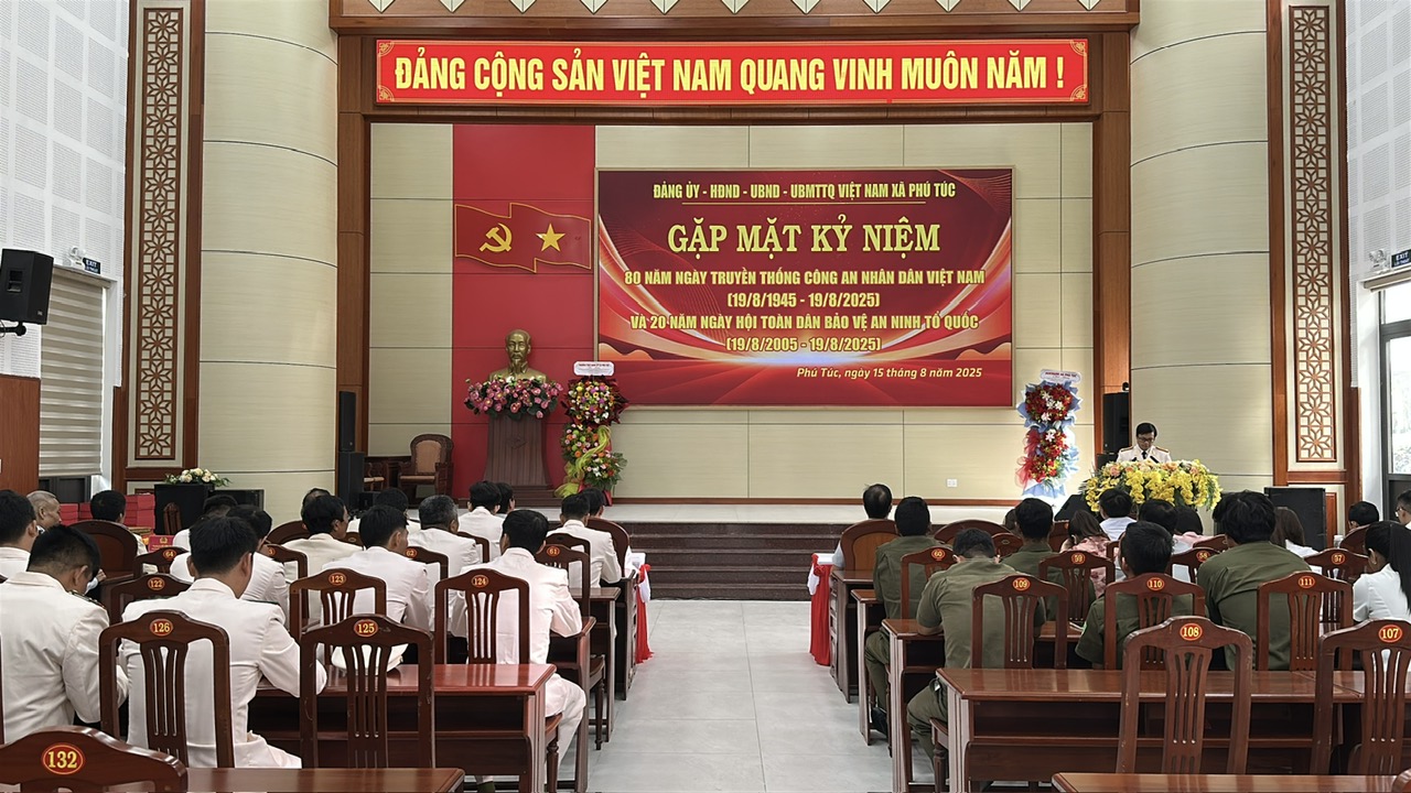 Sáng 15/8, Đảng ủy, HĐND, UBND, Ủy ban MTTQ Việt Nam xã Phú Túc tổ chức gặp mặt kỷ niệm 80 năm Ngày truyền thống Công an nhân dân Việt Nam (19/8/1945 – 19/8/2025) và 20 năm Ngày hội toàn dân bảo vệ an ninh Tổ quốc (19/8/2005 – 19/8/2025).