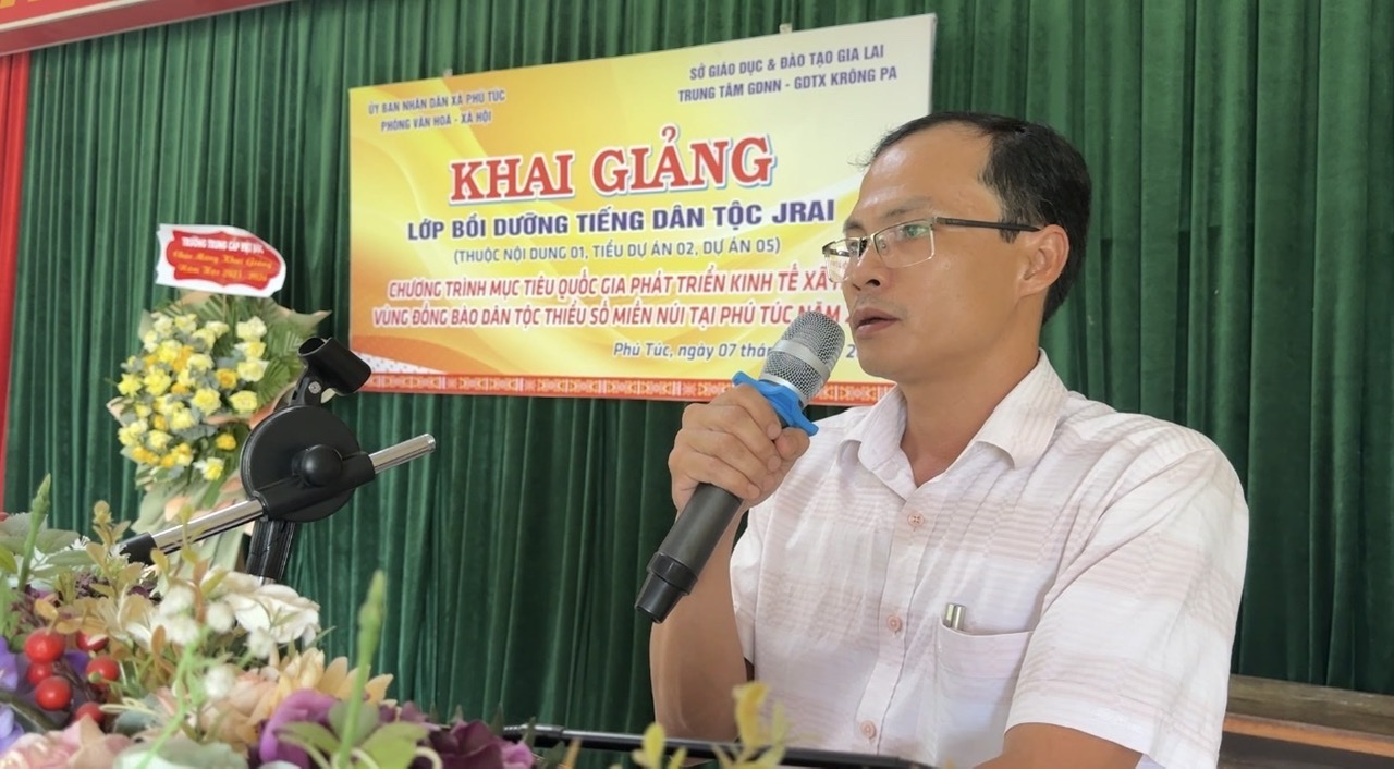 Chiều ngày 07/9/2025, tại Trung tâm Giáo dục nghề nghiệp – Giáo dục thường xuyên Krông Pa, Trung tâm GDNN–GDTX phối hợp với Ủy ban Nhân dân xã Phú Túc tổ chức khai giảng Lớp bồi dưỡng tiếng Jrai năm 2025.