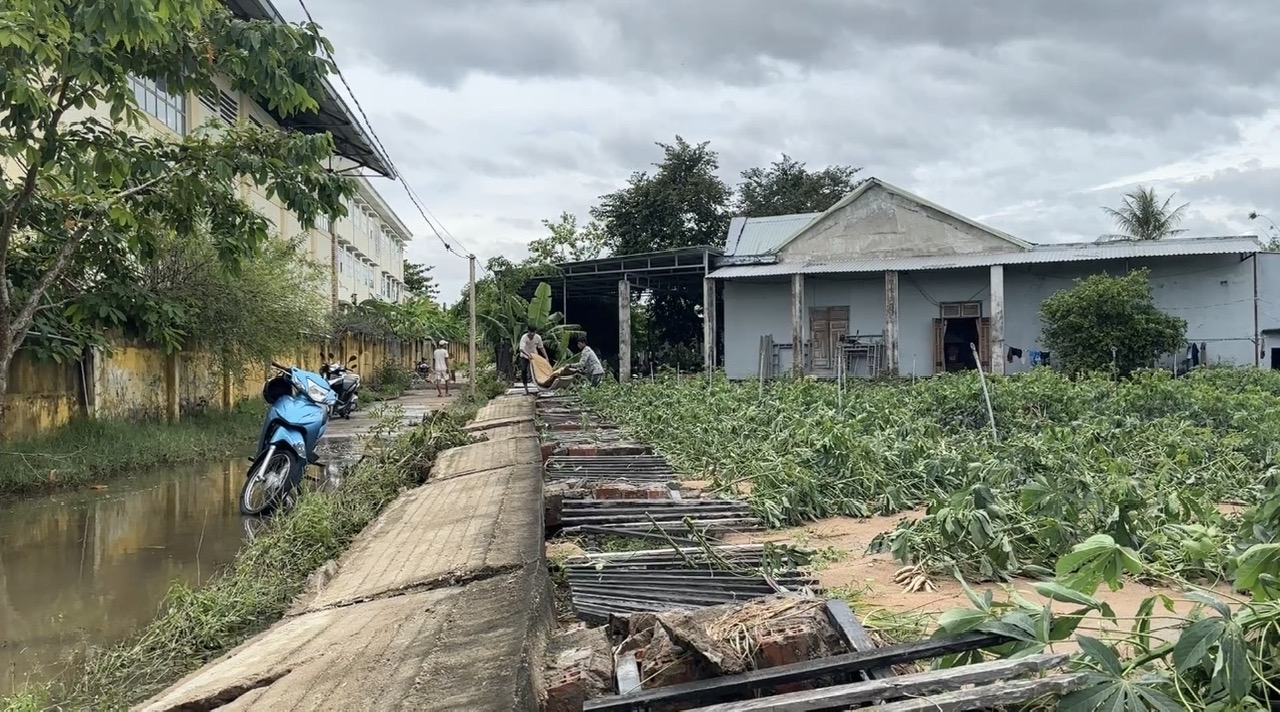 Hình ảnh tường rào của hộ dân bị sập sau mưa lớn tại tổ dân phố 5, xã Phú Túc ( Ảnh: Ngô Thu )
